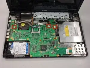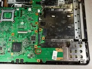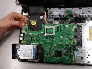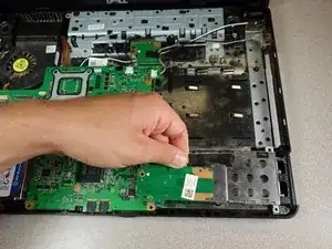 Поднимите материнскую плату за её верхний край и извлеките её из ноутбука.