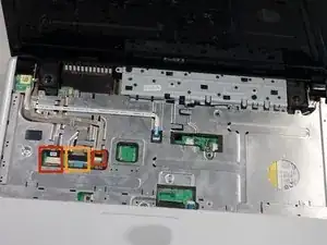 Отодвиньте клавиатуру от тачпада и отложите в сторону.
