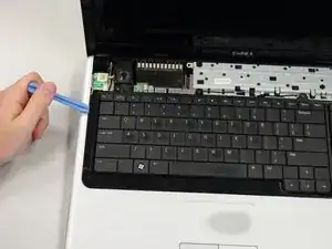 Проведите пластиковым инструментом вокруг клавиатуры, пока она полностью не отстегнется. Аккуратно извлеките клавиатуру.