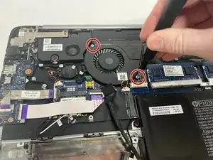 Удалите два винта длиной 2 мм, которые крепят вентилятор.
