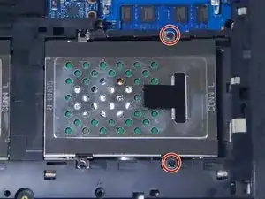 Найдите металлическую область для жесткого диска в нижнем левом углу ноутбука.