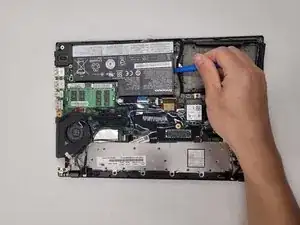Осторожно извлеките внутренний блок батареи из ноутбука с помощью инструмента для вскрытия iFixit.
