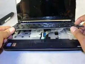 Используйте лопатку, чтобы поднять ZIF (разъём с нулевым усилием вставки) и освободить ленту клавиатуры.