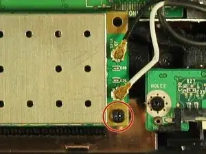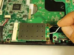 Аккуратно отсоедините чёрный и белый кабели от внутренней беспроводной карты.