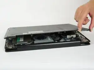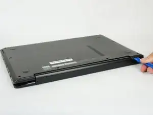 Попробуйте использовать инструмент для открытия в нескольких местах. Резкое поднятие задней крышки может повредить ноутбук.