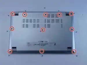 С помощью отвертки Phillips #1 открутите одиннадцать шурупов Phillips длиной 6.5 мм из нижней панели.