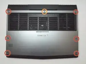 Используйте биту PH1, чтобы удалить шесть винтов M2.5x13 (2.4 мм) на задней панели ноутбука.