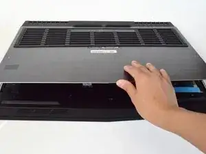 Если у вас возникают трудности, вставьте пластиковый инструмент для открывания в выемки по краям ноутбука, чтобы ослабить.