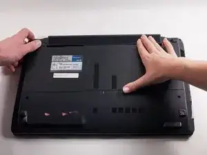 Положите ноутбук лицом вниз перед собой.