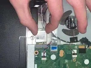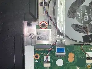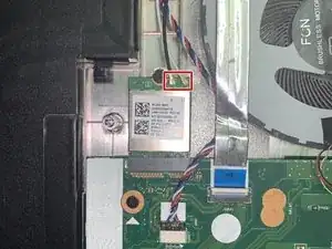 Ниже вентилятора расположена Wi-Fi карта. Отключите черные и белые антенны, прикладывая легкое усилие вверху.