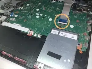 После отсоединения трех небольших кабелей клавиатуру можно поднять выше для удобного доступа к большому четвертому шлейфу.