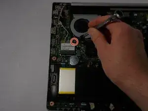 Уберите один винт с крестообразной головкой длиной 3 мм, который удерживает Wi-Fi карту на месте.