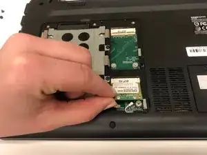 Выньте Wi-Fi карту, поднимая ее и вытаскивая к себе.