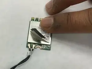 Используйте отвертку Phillips #0, чтобы удалить единственный винт 1 мм, который крепит WiFi карту.