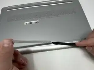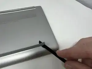 Вставьте инструмент для открытия iFixit в шов между клавиатурной областью и нижней крышкой.