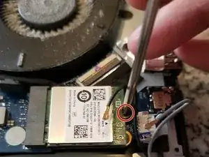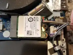 С помощью отвертки Philips #00 открутите винт, который крепит Wi-Fi карту к устройству.
