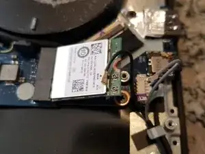 С помощью пластикового инструмента для открытия аккуратно отключите два кабеля, подключенных к Wi-Fi карте.