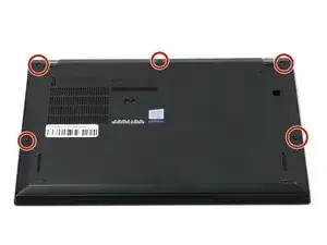 Используйте отвертку Phillips #0, чтобы ослабить 5 винтов, крепящих заднюю панель к ноутбуку.