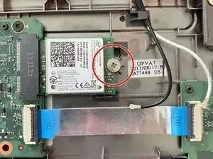 Используйте отвертку JIS #00, чтобы unscrew один 1-миллиметровый винт, соединяющий Wi-Fi карту с основанием.