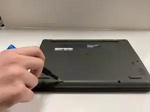 Используйте отвертку JIS #00, чтобы удалить 11 винтов на нижней стороне ноутбука.