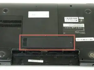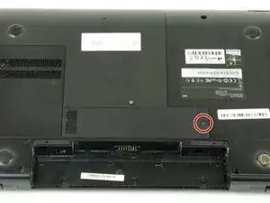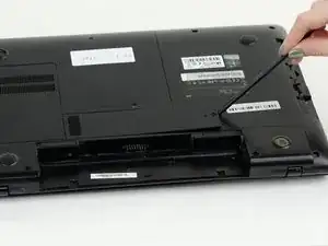 Уложите ноутбук так, чтобы нижняя часть была обращена вверх.