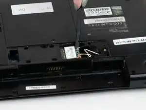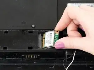 Осторожно снимите два провода, прикрепленных к Wi-Fi карте, используя пластиковый инструмент для открытия или пластиковую лопаточку, чтобы поддеть под место, где прикреплен провод.