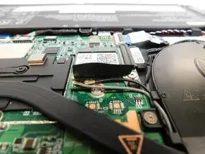 Найдите Wi-Fi карту. В данном устройстве она расположена рядом с вентилятором.