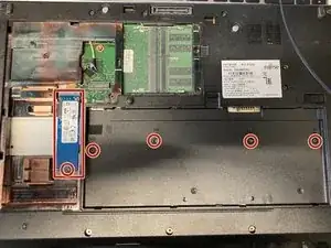 Удалите эти винты, затем извлеките аккумулятор.