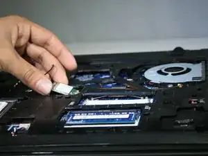 Открутите один винт перед Wi-Fi PCI картой с помощью отвертки Phillips #0.