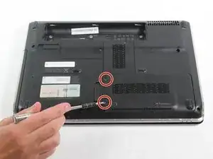 Переверните ноутбук так, чтобы его нижняя часть была обращена вверх, а шарнир находился от вас.