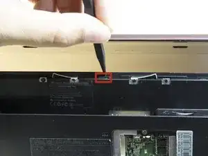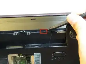 Вставьте плоский конец лопатки в небольшой зазор между верхней частью клавиатуры и корпусным пластиком ноутбука.