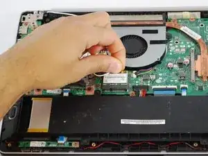 Отключите два маленьких провода, подключенных к wifi-карте.