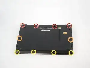 Снимите четыре винта Philips #1 по 2 мм с нижней части ноутбука.