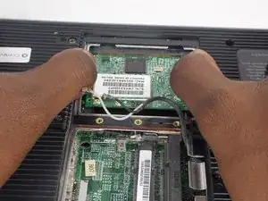 Вытяните WiFi-карту из разъема под тем же углом, под которым она сейчас расположена.