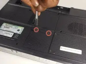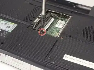 Ослабьте винт Phillips #1 размером 5 мм, который закрепляет крышку отсека Mini PCI к компьютеру.