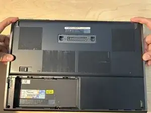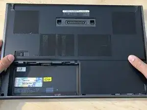 Сдвиньте нижнюю крышку в сторону задней части ноутбука.