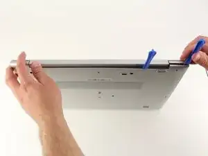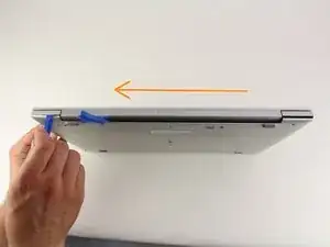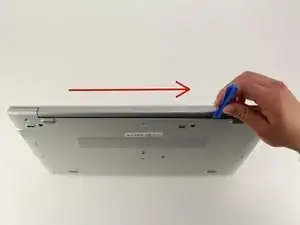 Протяните пластиковый инструмент вдоль края слева направо и используйте второй инструмент для открытия верхнего правого угла.