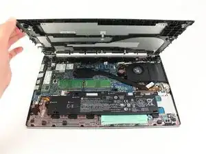 Поверните компьютер так, чтобы сторона с петлей была сверху.