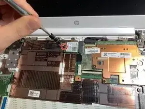 Удалите один винт Phillips #000 размером 3,3 мм, находящийся рядом с WiFi-картой.