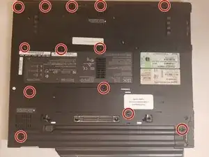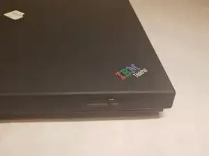 Переверните ноутбук так, чтобы логотип IBM ThinkPad был обращён вверх.