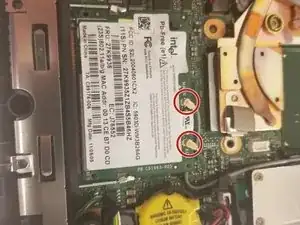 Найдите два провода, подключенные к верхней части Wi-Fi-карты.