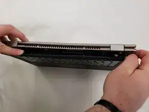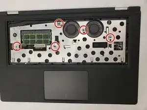 Чтобы снять рамку клавиатуры (чёрную крышку, содержащую тачпад), выкрутите пять винтов отвёрткой Phillips #0.