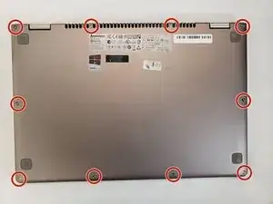 Снимите десять винтов с задней панели ноутбука с помощью отвёртки Torx T4.