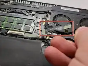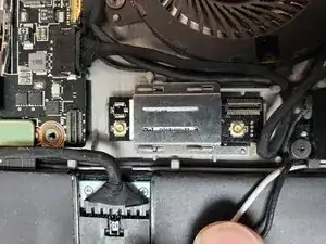 Поднимите правый нижний рычаг на металлическом креплении Wi‑Fi карты.