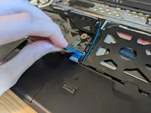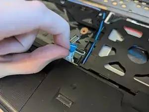 Потяните за синюю язычок, чтобы отсоединить ленточный кабель.