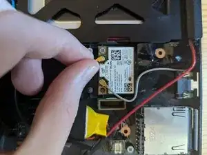 Вставьте новую Wi‑Fi карту и заново установите винт Phillips #00 длиной 4 мм, который её фиксирует.