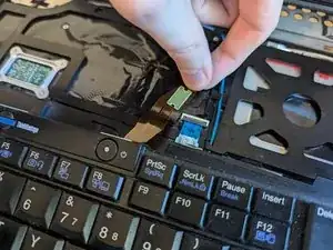 Осторожно потяните за язычок разъёма, чтобы отсоединить клавиатуру.