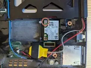 Используйте отвертку Phillips #00, чтобы удалить винт длиной 4 мм, фиксирующий Wi‑Fi карту.