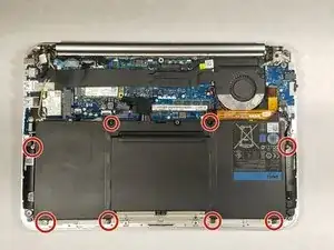 Используйте отвертку Phillips #00 для удаления 8 винтов, закрепляющих батарею.