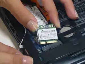 Осторожно вытяните WiFi-карту из ее слота. Убедитесь, что вы тянете карту вверх и наружу из слота к себе.
